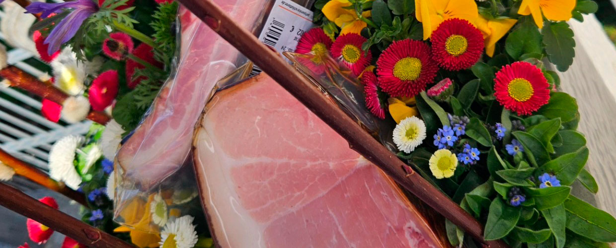 Wir erstellen unser hausgemachtes Ostergeräuchertes mit ausgewählten Gewürzen und viel Liebe zum Handwerk. Der zart geräucherte Schinken ist ideal für das Osterbrunch.
