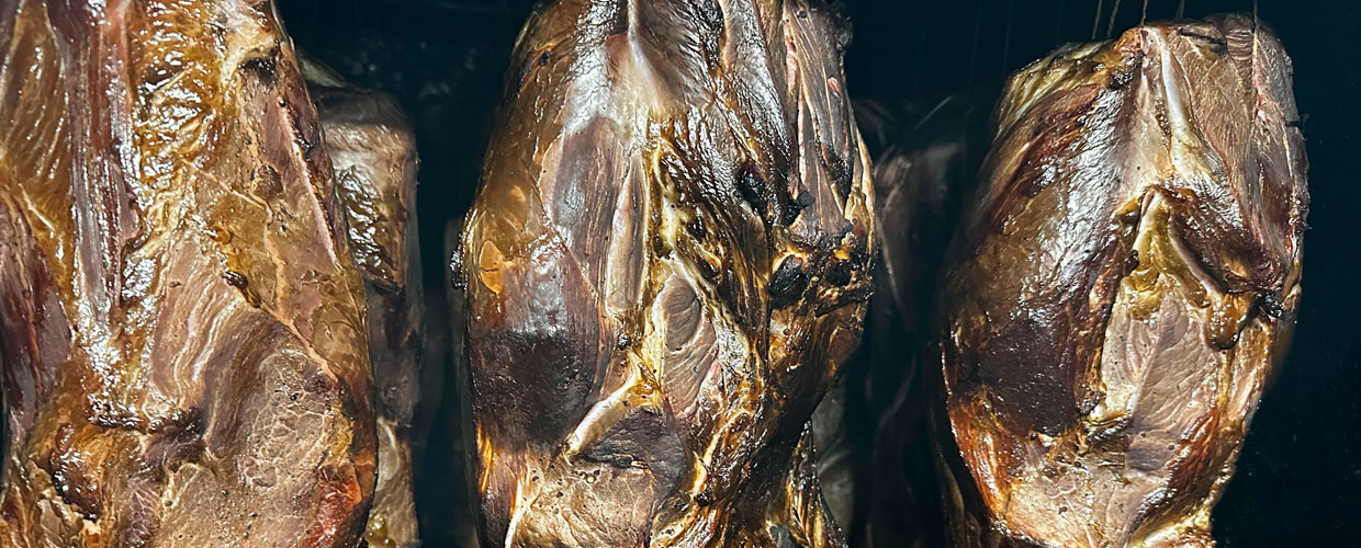 Unser hausgeräucherter Schinken wird mit viel Liebe und Geduld nach traditionellem Handwerk hergestellt.